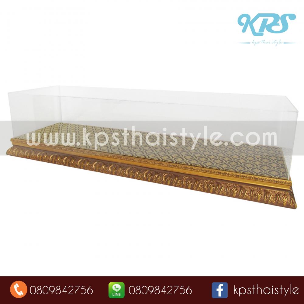ตู้จัดแสดงสินค้า วัสดุเป็นอะคริลิค ฐานไม้กรอบรูป ฐานปูด้วยผ้าลายไทย สั่งผลิตได้ทุกขนาดที่ต้องการ